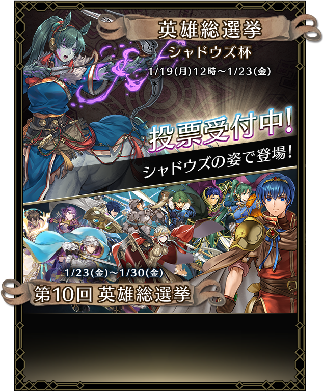 「ファイアーエムブレム ヒーローズ 英雄総選挙 シャドウズ杯」(以下本キャンペーン)は、「ファイアーエムブレム ヒーローズ」の配信9周年を記念したキャンペーンです。